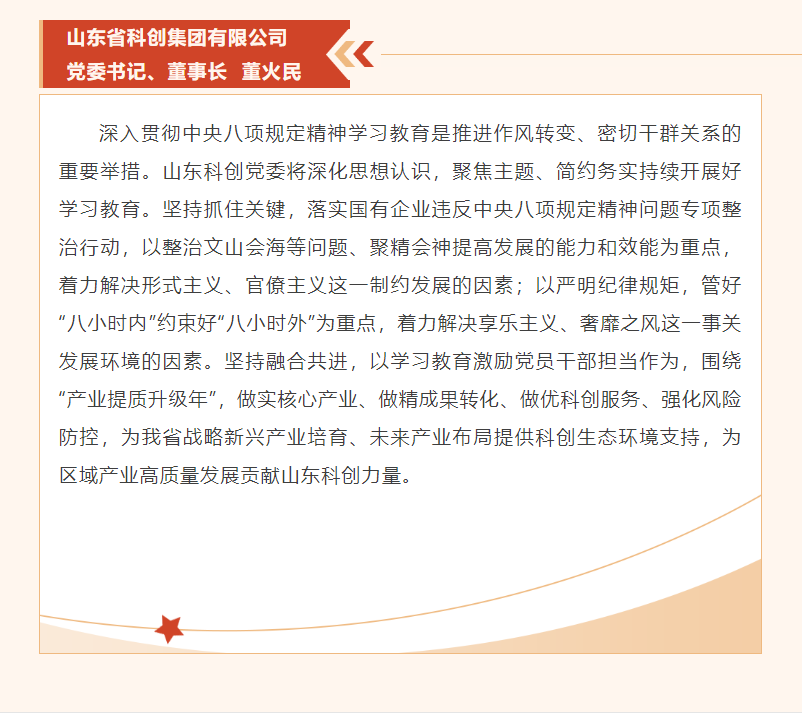 上一篇:山東省科創(chuàng)集團(tuán)舉行深入貫徹中央八項(xiàng)規(guī)定精神學(xué)習(xí)教育讀書班暨黨委理論學(xué)習(xí)中心組集體學(xué)習(xí)
